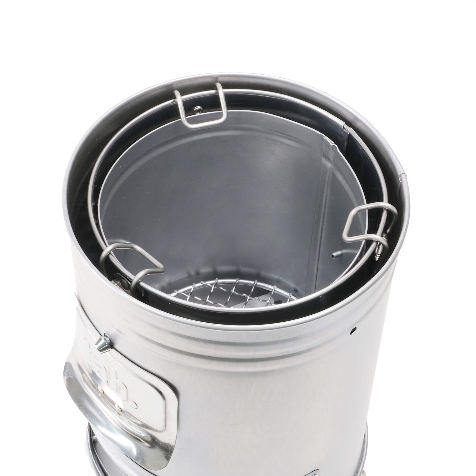 スイングフックを閉じて上下を逆さまにすると、缶ストーブの外側と内筒(燃焼筒)の間にすっぽりと収納可能。持ち運び時もかさばらず省スペース。
